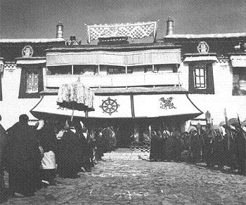 在供奉香草的白色香塔北面,有一幢頂部有一層紅色草墻的三層樓房,這是當(dāng)年的清朝駐藏大臣衙門。清朝向西藏派遣駐藏大臣,始于雍正年間。從那時(shí)到辛亥革命爆發(fā)的一百八十三年間,清朝政府共派遣了八十四任駐藏大臣.
