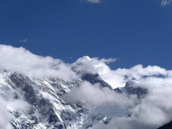 關(guān)于南迦巴瓦還有一個廣為外界所知的傳說。相傳很久以前,上天派南迦巴瓦和拉加白壘鎮(zhèn)守東南。弟弟加拉白壘勤奮好學(xué)武功高強(qiáng),個子也是越長越高,哥哥南迦巴瓦十分嫉妒。于是在一個月黑風(fēng)高之時將弟弟殺害,將他的頭顱丟了米林縣境內(nèi),化成了德拉山。上天為懲罰南迦巴瓦的罪過,于是罰他永遠(yuǎn)駐守雅魯藏布江邊,永遠(yuǎn)陪伴著被他殺害的弟弟。這個神話故事很生動地向我們解釋了這兩座山的特點(diǎn):我們現(xiàn)在看到的加拉白壘峰頂永遠(yuǎn)都是圓圓的形狀,那是因為它是一座無頭山:南迦巴瓦則大概自知罪孽深重,所以常年云遮霧罩不讓外人一窺。 |